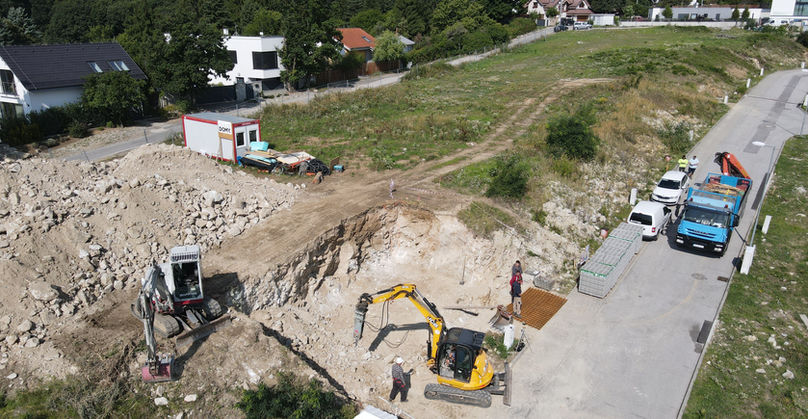 Búranie rodinného domu v Lamači , výkop základových pásov a výstavba základovej dosky